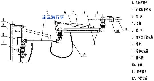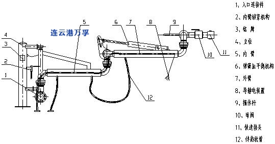 4.外臂:可在水平面和垂直面的范圍內(nèi)轉(zhuǎn)動,主要用于裝卸臂同槽車、槽船調(diào)整對接工作位置的部件